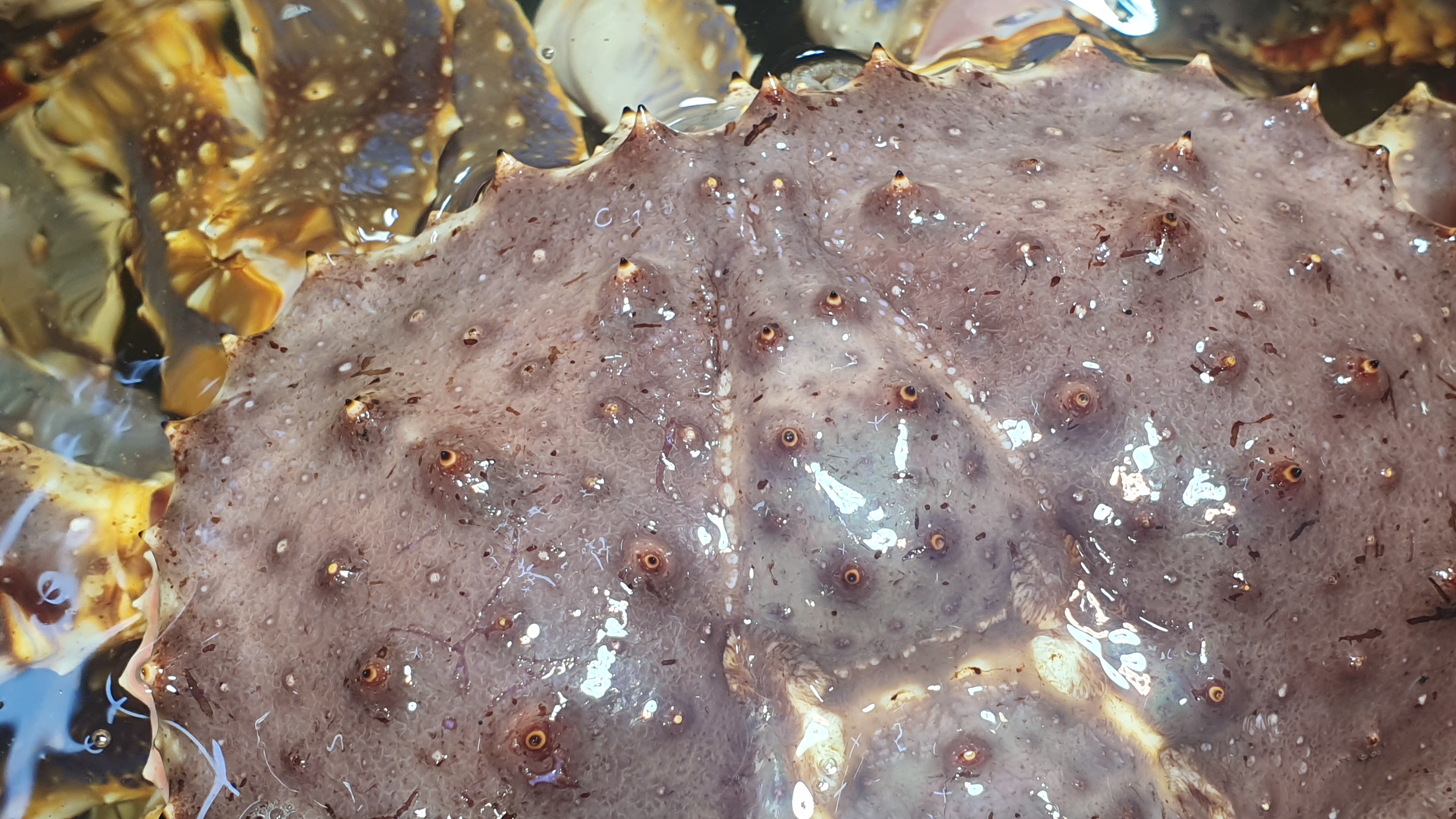 킹크랩 레드 블루 구분하는 법 중 가장 쉬운 게 바로 이 등딱지의 뿔의 개수를 보면 된다.